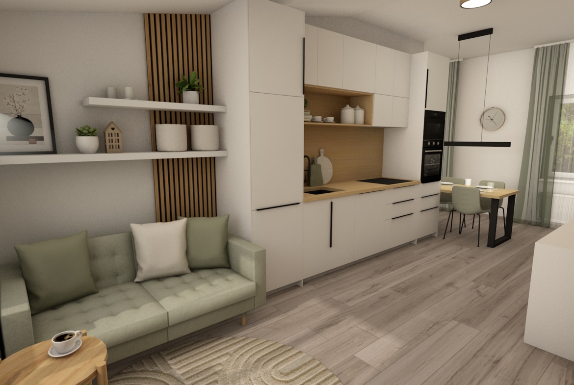Nabízíme k pronájmu zcela nový a elegantně dispozičně řešený byt 1+kk o výměře 43 m², umístěný ve 3. patře historického domu, který prošel kompletní a detailní rekonstrukcí v rámci projektu Rezidence Říp. Byt bude vybaven moderní kuchyňskou linkou včetně spotřebičů a jídelním stolem dle návrhu. Chodba bude zařízena vestavěnou stěnou a v obývacím prostoru bude vestavěná skřín. Další vybavení je pouze vizualizací, pro inspiraci nájemce. Na podlaze je laminátová podlaha v dekoru dřeva a elegantní italská keramická dlažba v koupelně. V koupelně se nachází sprchový kout. Komfort bydlení zvyšuje systém rekuperace vzduchu, který zajišťuje trvalý přísun čerstvého vzduchu bez nutnosti větrání. Vytápění i ohřev vody je centrálně z domovní kotelny. Celý objekt je zateplen a osazen izolačními okny s trojsklem, což výrazně přispívá k nízkým nákladům na vytápění a klidnému prostředí. Energetická náročnost budovy odpovídá třídě PENB B. Za příplatek lze pronajmout parkovací stání naproti domu. Rezidence Říp se nachází v atraktivní části Kralup nad Vltavou, které nabízí ideální kombinaci klidného bydlení v blízkosti přírody a výborné dostupnosti do Prahy – cesta vlakem trvá přibližně 25 minut. V místě je kompletní občanská vybavenost. V okolí naleznete přírodní krásy jako horu Říp, řeku Vltavu či CHKO Kokořínsko. Byt bude k nastěhování v polovině září 2025. Nájemné činí 15.000,-Kč + poplatky cca 4.000,-Kč, vratná jistota 15.000,-Kč a provize RK 15.000,-Kč. Pro více informací nebo domluvení prohlídky nás neváhejte kontaktovat.
